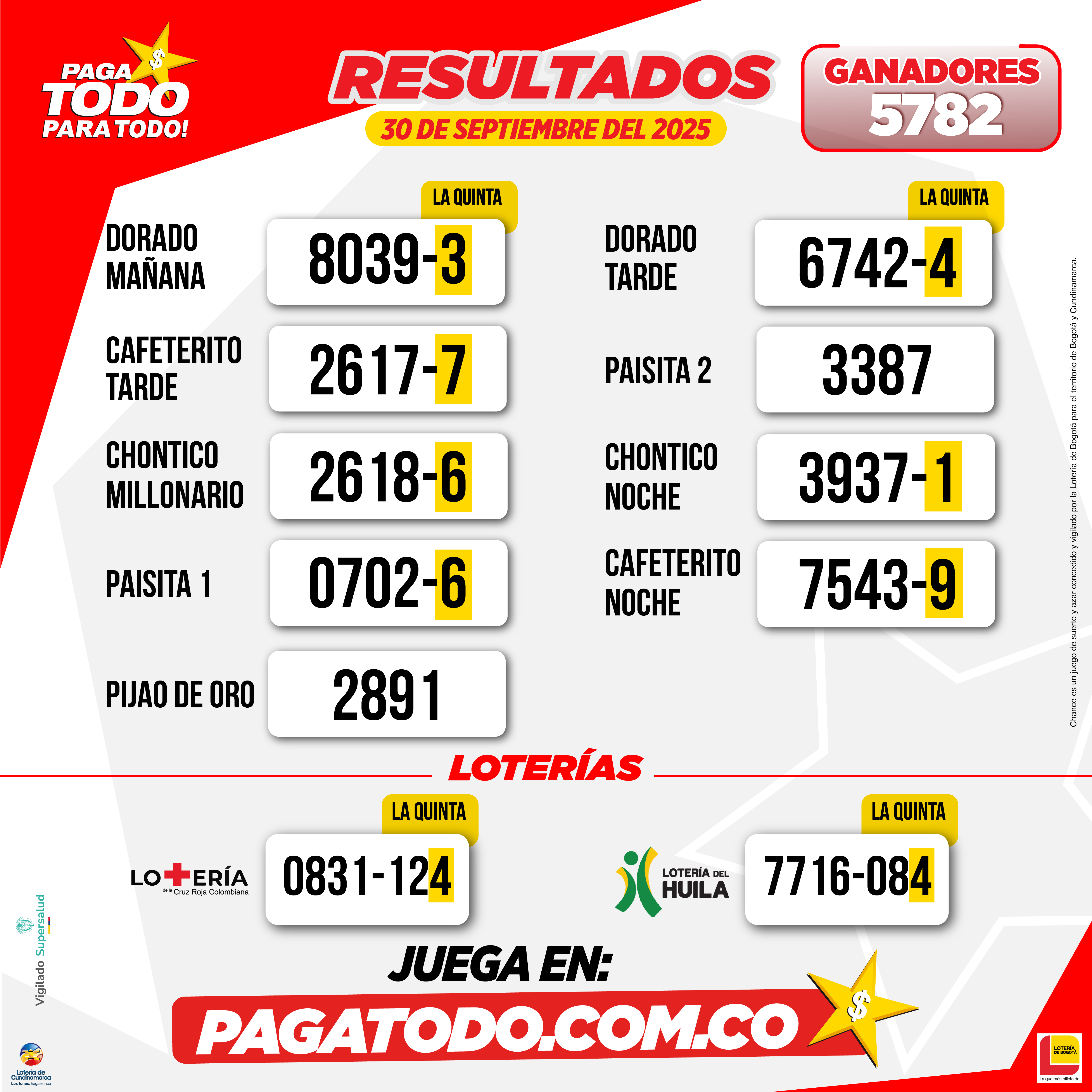Resultados sorteos y Loterías del 30 de septiembre del 2025
