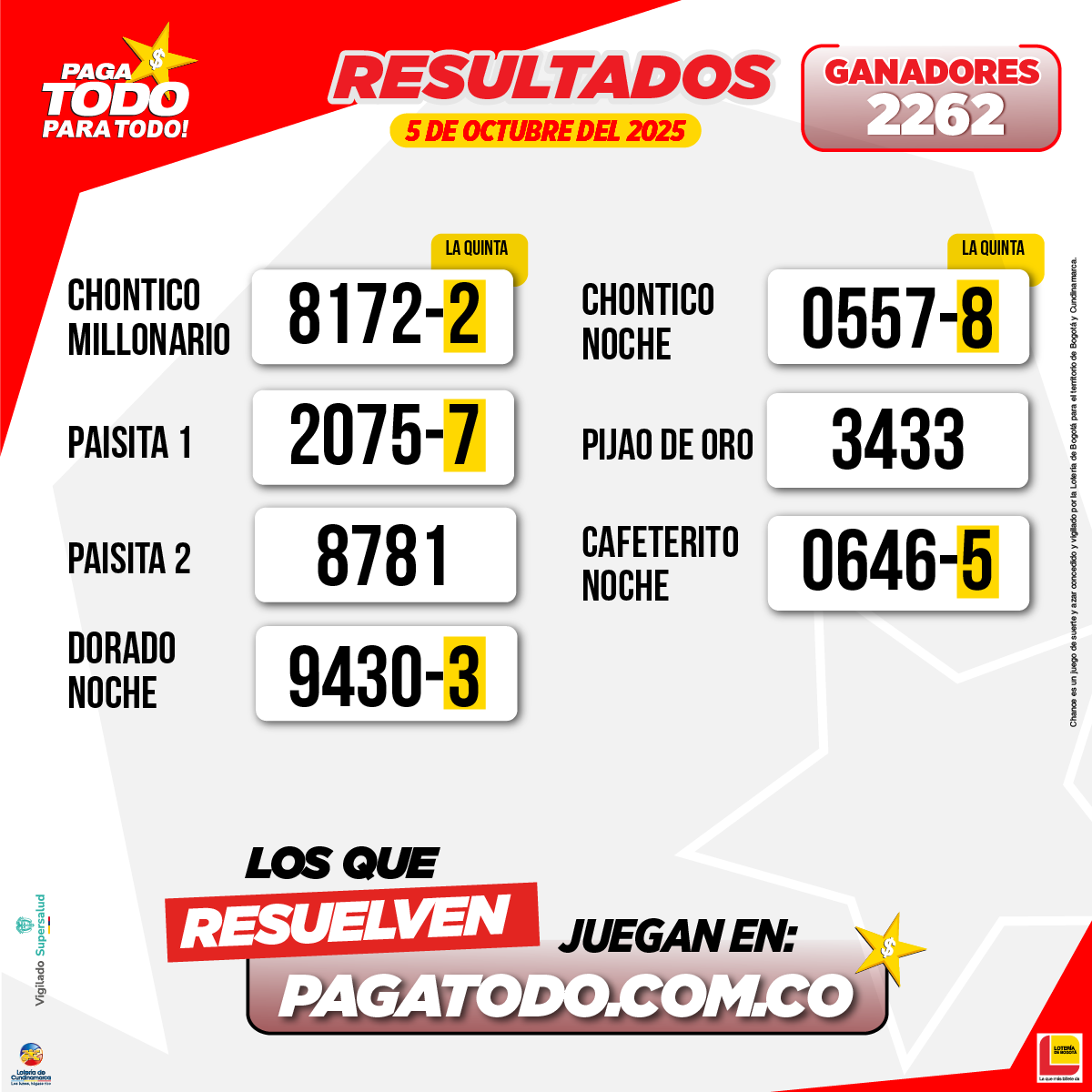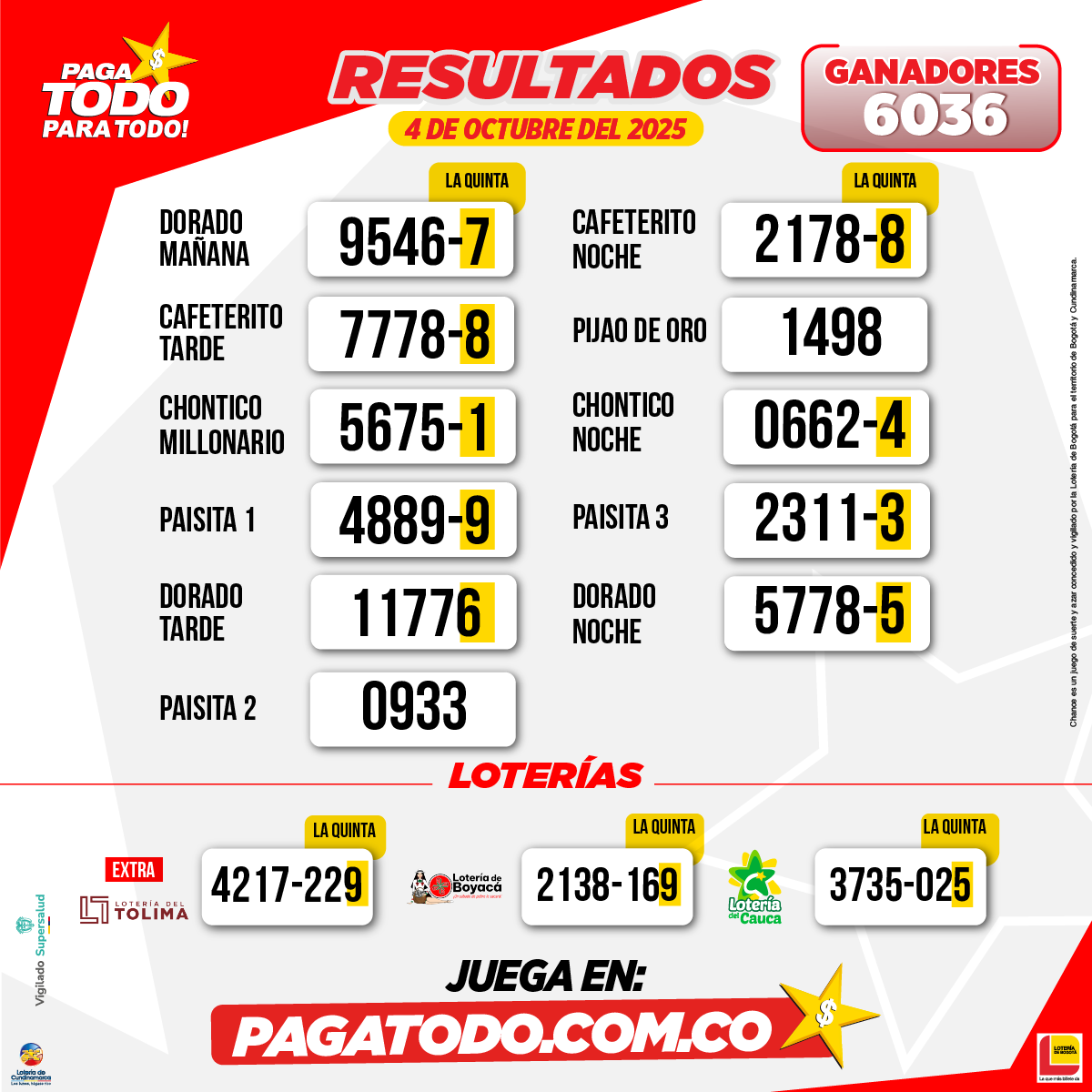 Resultados sorteos y Loterías del 4 y 5 de octubre del 2025