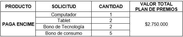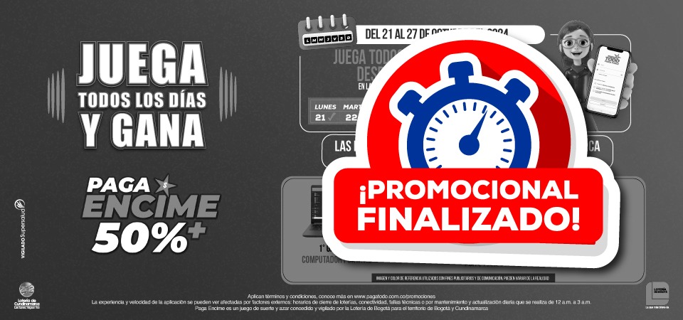 JUEGA TODOS LOS DÍAS Y GANA – PAGA ENCIME, la cual hace parte de las estrategias de marketing diseñadas para motivar e impulsar la compra de los productos, juegos de suerte y azar y/o servicios que integran su portafolio, dándole a sus clientes la posibilidad de participar en la actividad a realizarse para la APP o Sucursal Virtual, y que lo podrán hacer acreedor de uno de los premios que se entregarán de acuerdo con la mecánica y condiciones previstas para dicha actividad.