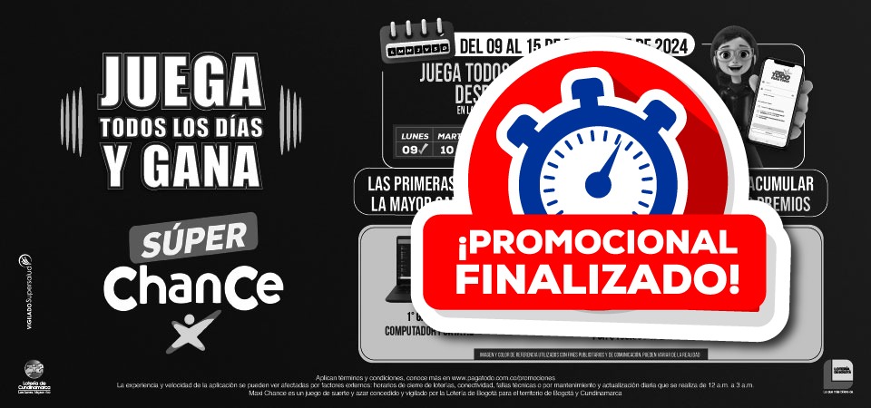 JUEGA TODOS LOS DÍAS Y GANA – SÚPER CHANCE, la cual hace parte de las estrategias de marketing diseñadas para motivar e impulsar la compra de los productos, juegos de suerte y azar y/o servicios que integran su portafolio, dándole a sus clientes la posibilidad de participar en la actividad a realizarse para la APP o Sucursal Virtual, y que lo podrán hacer acreedor de uno de los premios que se entregarán de acuerdo con la mecánica y condiciones previstas para dicha actividad.