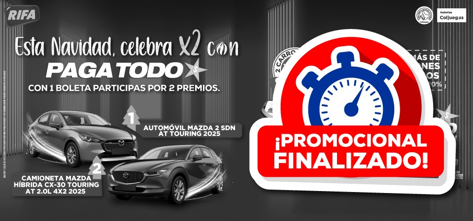 RIFA PAGA TODO DICIEMBRE – DÚO NAVIDEÑO DISPONIBLE EN LOS PUNTOS DE VENTA PAGA TODO EN BOGOTÁ Y CUNDINAMARCA O DESDE LA APP PAGA TODO A NIVEL NACIONAL